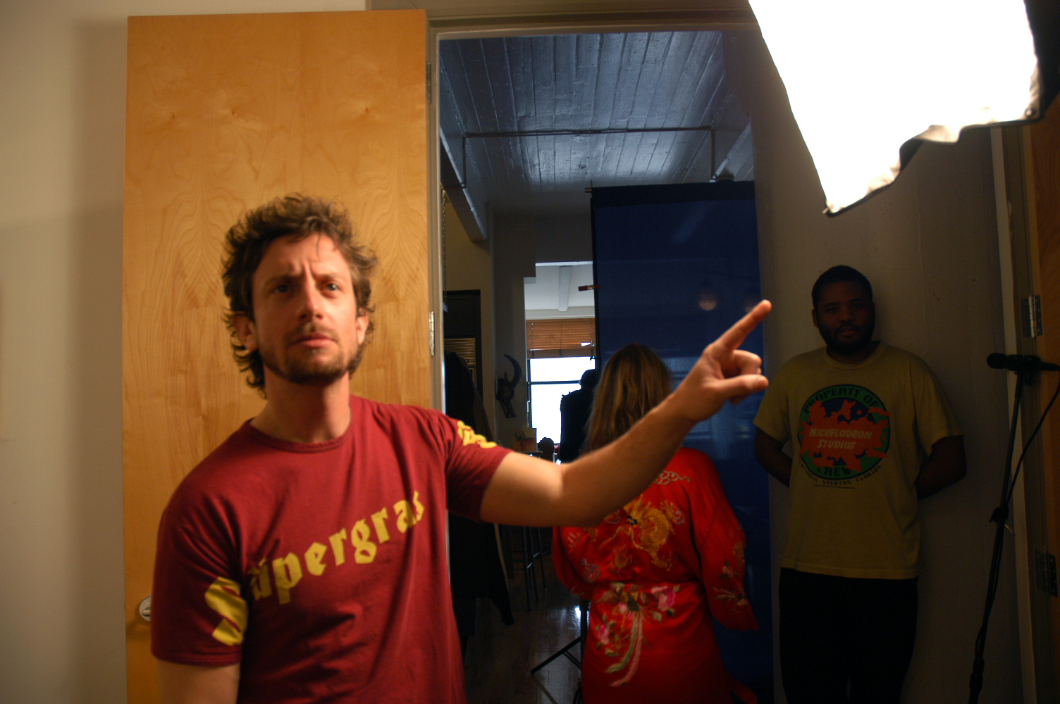 Adam explains what a light is. (It's the thing he's pointing at)