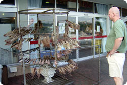 a squid drying machine and massage chairs at a Japanese electronics