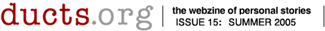 While we were eating our peanut butter and jelly sandwiches, sitting around watching the last episode of "Everybody Loves Raymond," passing around the onion dip and crackers, something happened. Suddenly, Ducts.org was inundated with submissions. We are now receiving as many as 10 every week and from people all around the country (and, on occasion, from around the world). We're not quite sure how this happened, although we suspect you had a lot to do with it....