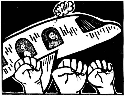 Friday, April 14 The story has been building for weeks. The protesters are coming from all over to shut down the World Bank and IMF meetings. It's going to be the "Battle of Seattle" II. The protests sound like a cross between an art show and militant action, with dancers, puppets, costumes, and huge, colorful signs all part of the march. The police have been gearing up. They stage a preemptive strike against the protesters' headquarters, taking away some giant puppets. On the way to work, I notice pockets of burly United Auto Workers with signs, milling around Dupont Circle, preparing to head south for a combined rally with other protesters near the World Bank. They aren't dressed up at all. I promise myself that I'll catch some of the action over the weekend. The main protests are planned for Sunday and Monday. I meet a friend at Union Station and hear on the way that four tons of manure has been dumped on Pennsylvania Avenue by some animal rights activists. My friend wonders which minimum-salaried DPW worker gets to clean up the manure. The police end up giving the puppets back to the protesters. |