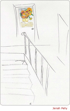On the fairly time-worn door to my third floor apartment I tacked up a poster of Van Gogh's Sunflowers.
