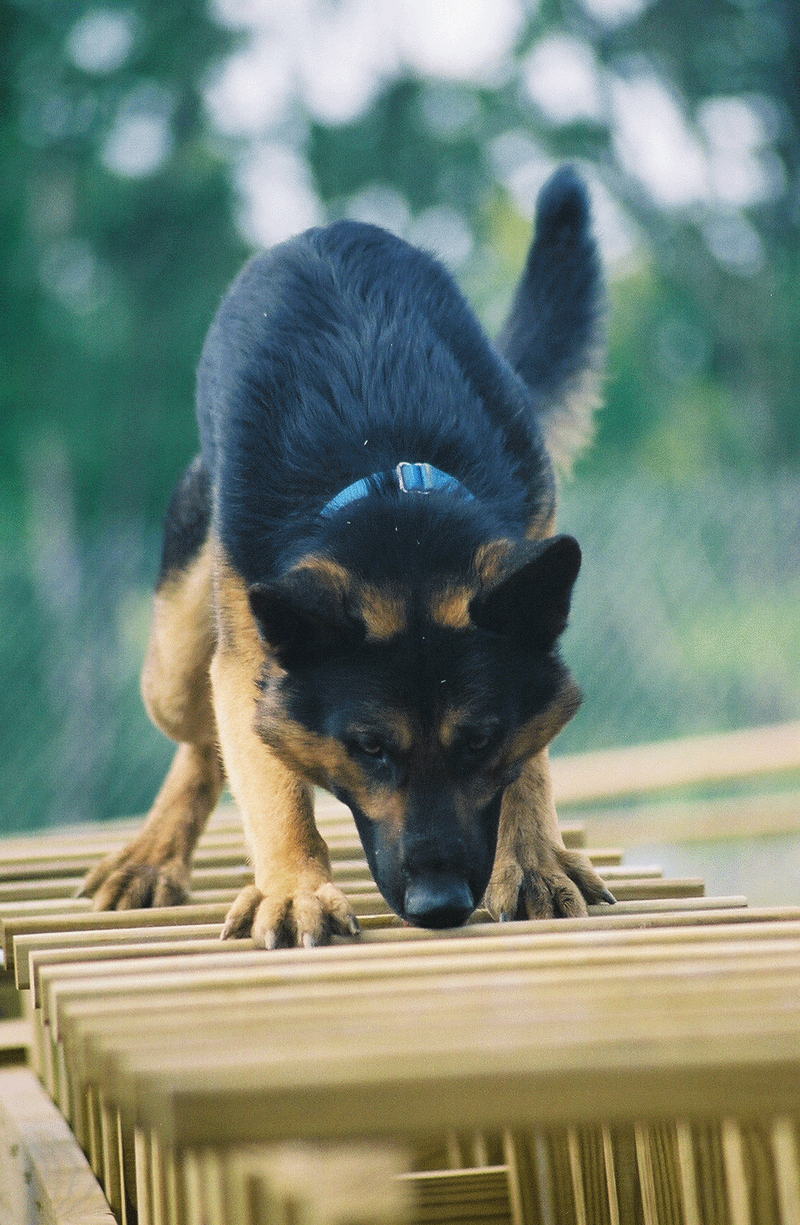 Drako going down tire bridge |